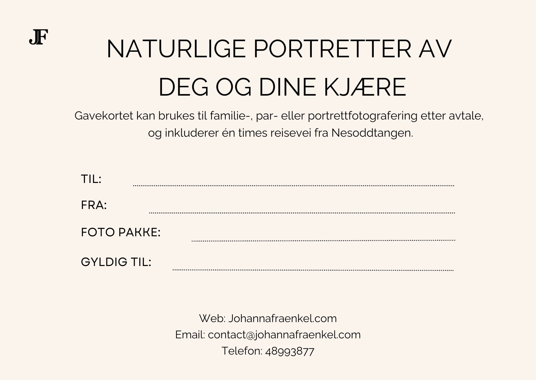 Gavekortet kan brukes til familie-, par- eller portrettfotografering etter avtale,